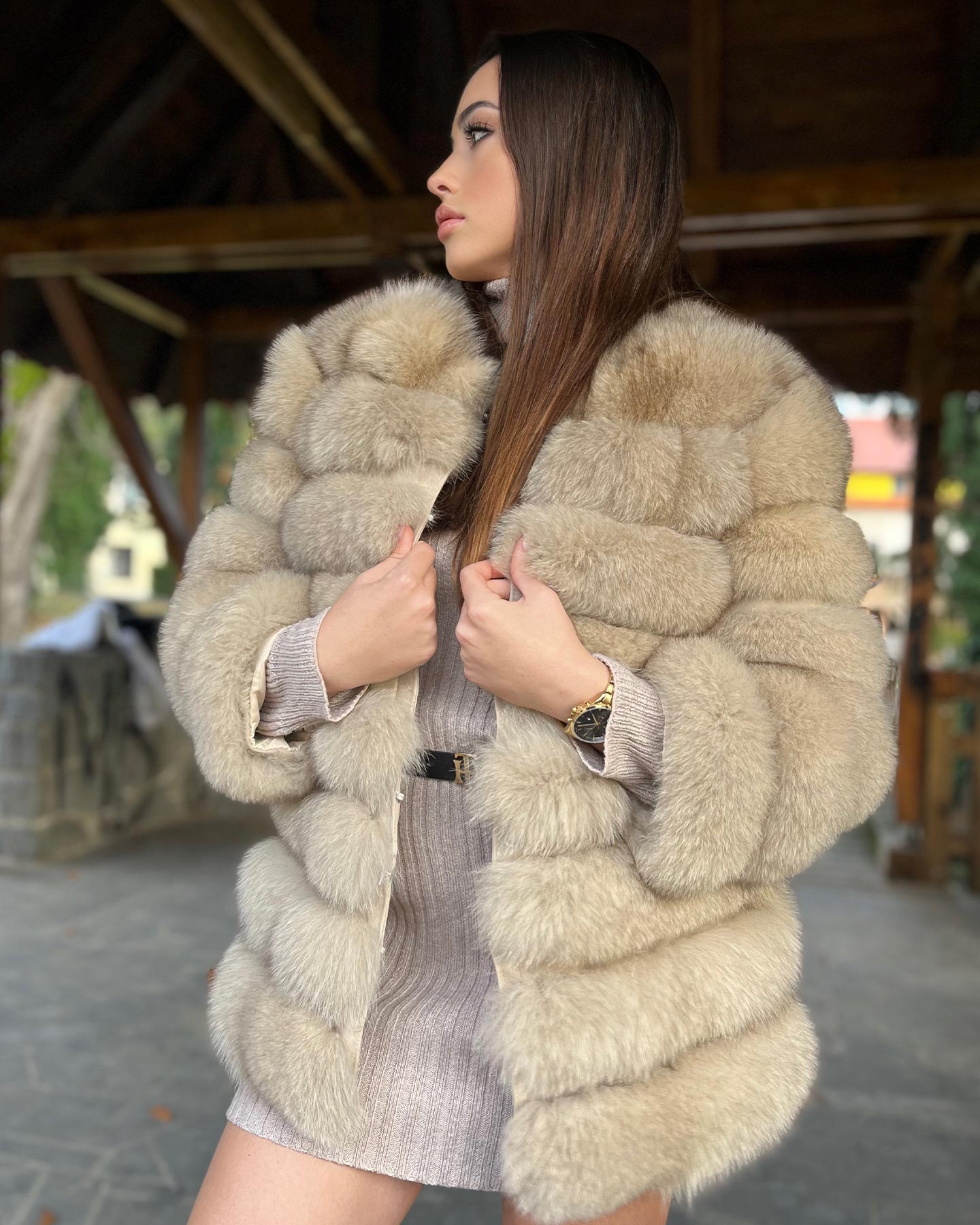 Komfort i elegancja w jednym — futro 4w1, które można nosić na 4 różne sposoby. Nasza luksusowa kurtka futrzana zapewnia ciepło i wygodę.